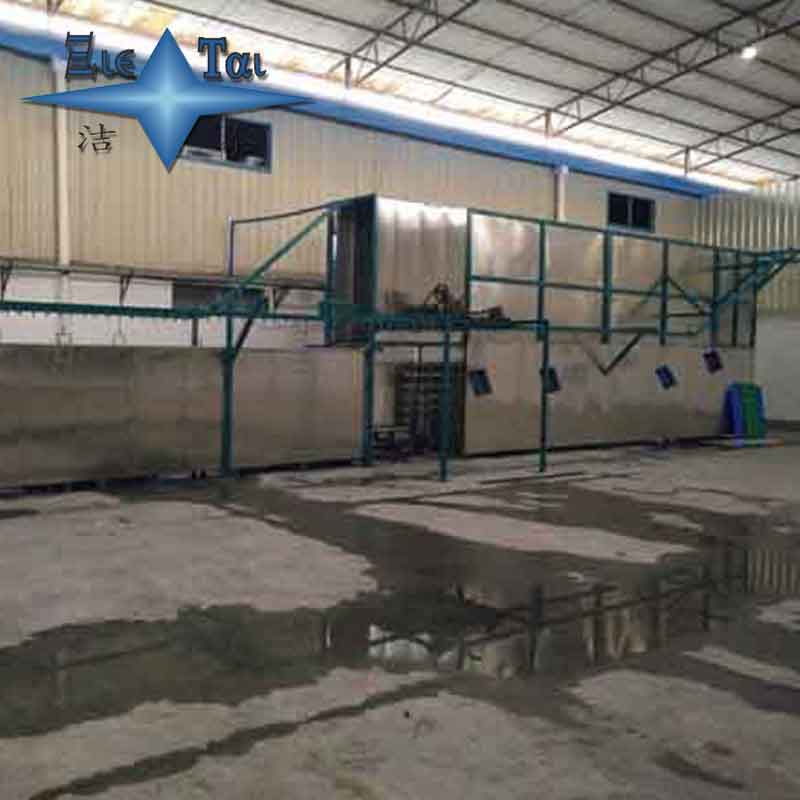 潔泰五金餐具用懸掛鏈?zhǔn)蕉嗖鄢暡ㄇ逑礄C(jī),采用懸掛輸送鏈和專用掛具,懸掛輸送工件,設(shè)置超聲清洗、漂洗、噴淋、脫水、烘干等多道工序,變頻器無級(jí)調(diào)節(jié)懸掛鏈運(yùn)行速度,適應(yīng)多種工件不同需求的清洗節(jié)拍,可根據(jù)場(chǎng)地靈活布置各清洗工序,運(yùn)行平穩(wěn),可靠性高,操作簡(jiǎn)便,根據(jù)客戶不同的需求作非標(biāo)設(shè)計(jì)。